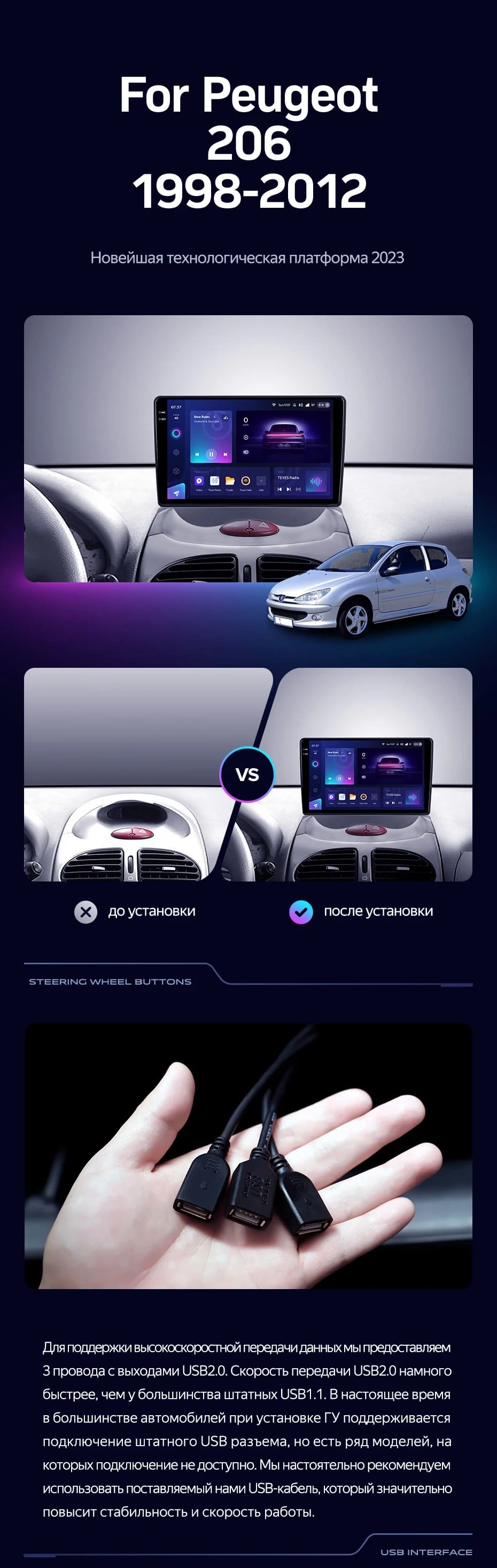 Переходная рамка Peugeot 206 T13 T16 T12 (1998-2012) (9") - купить всего за 5 600 руб. в интернет-магазине в Туле Teyes.com.ru. ✓ Самый лучший выбор мультимедиа ✓ Лучшая замена штатному ГУ ✓ Тел. +7 (800) 775-31-74