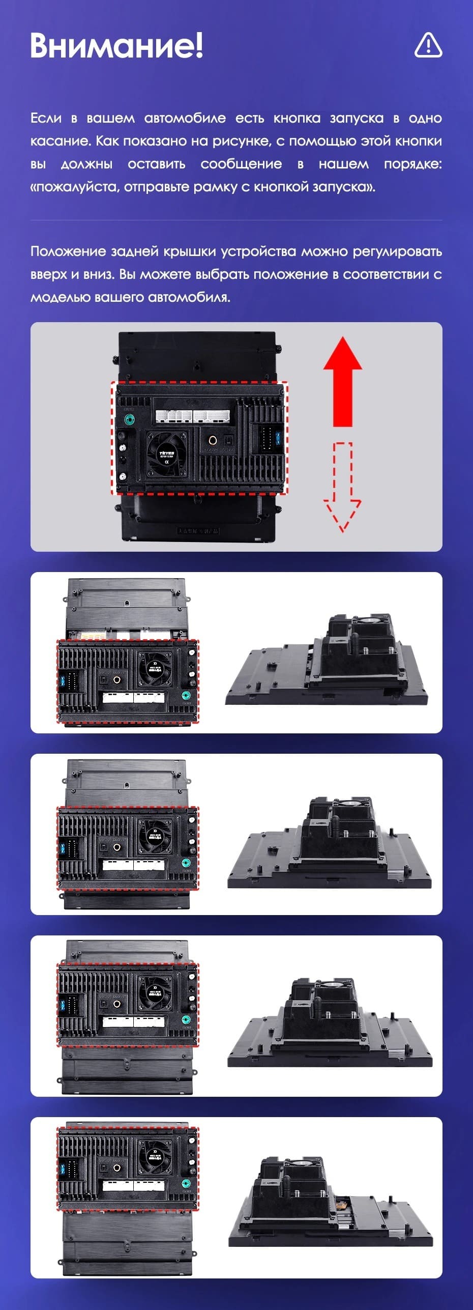 Вертикальная установка магнитолы закрывается специальной рамкой под определённый автомобиль. Утончённый, лаконичный дизайн Teyes TPRO 2 подойдёт под любую премиальную обшивку салона. Большой выбор цветовых решений интерфейса позволяет создавать индивидуальное оформление, чтобы мерцания и анимации на мониторе не отвлекали от езды. Teyes TPRO 2 - это симбиоз передовых технологий, созданный для вашего комфорта и безопасности.