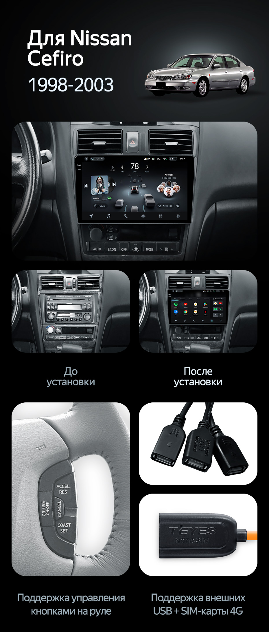 Штатная магнитола Teyes CC3 2K 4/32 Nissan Cefiro 3 A33 (1998-2003) F2 - купить всего за 39 400 руб. в интернет-магазине в Туле Teyes.com.ru. ✓ Самый лучший выбор мультимедиа ✓ Лучшая замена штатному ГУ ✓ Тел. +7 (800) 775-31-74
