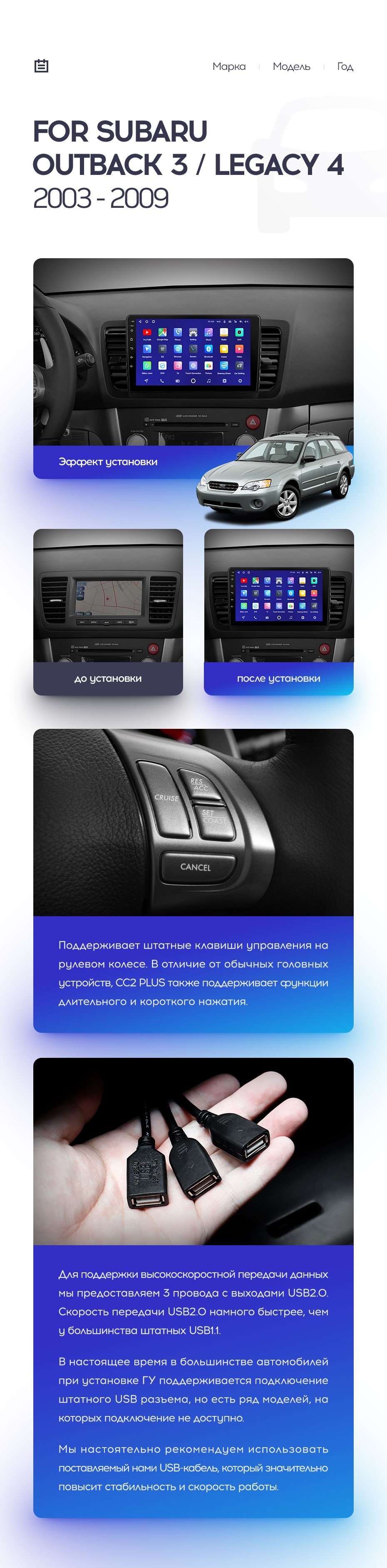 Штатная магнитола Teyes CC3 2K 4/32 Subaru Outback 3 (2003-2009) (13") - купить всего за 41 170 руб. в интернет-магазине в Туле Teyes.com.ru. ✓ Самый лучший выбор мультимедиа ✓ Лучшая замена штатному ГУ ✓ Тел. +7 (800) 775-31-74