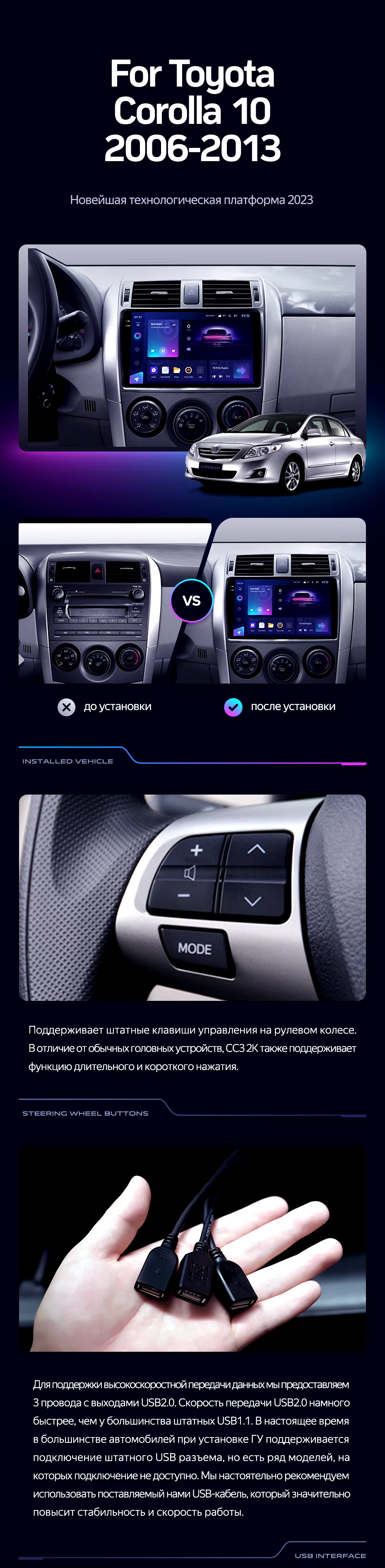 Штатная магнитола Teyes CC3 2K 6/128 Toyota Corolla 10 E140 E150 (2006-2013) Тип-B (13") - купить всего за 46 560 руб. в интернет-магазине в Туле Teyes.com.ru. ✓ Самый лучший выбор мультимедиа ✓ Лучшая замена штатному ГУ ✓ Тел. +7 (800) 775-31-74