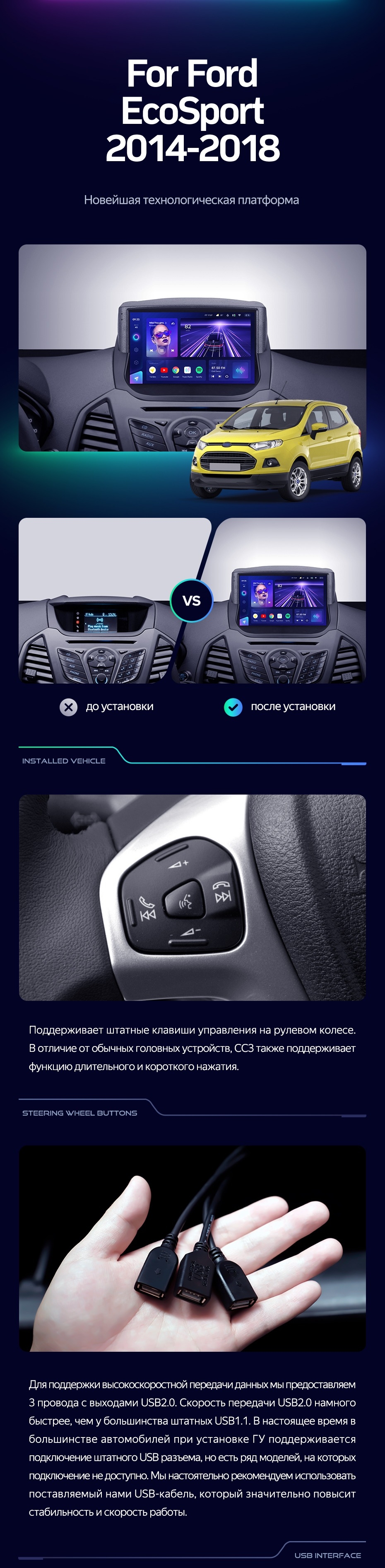 Штатная магнитола Teyes CC3 4/32 Ford EcoSport (2014-2018) F1 - купить всего за 33 530 руб. в интернет-магазине в Туле Teyes.com.ru. ✓ Самый лучший выбор мультимедиа ✓ Лучшая замена штатному ГУ ✓ Тел. +7 (800) 775-31-74