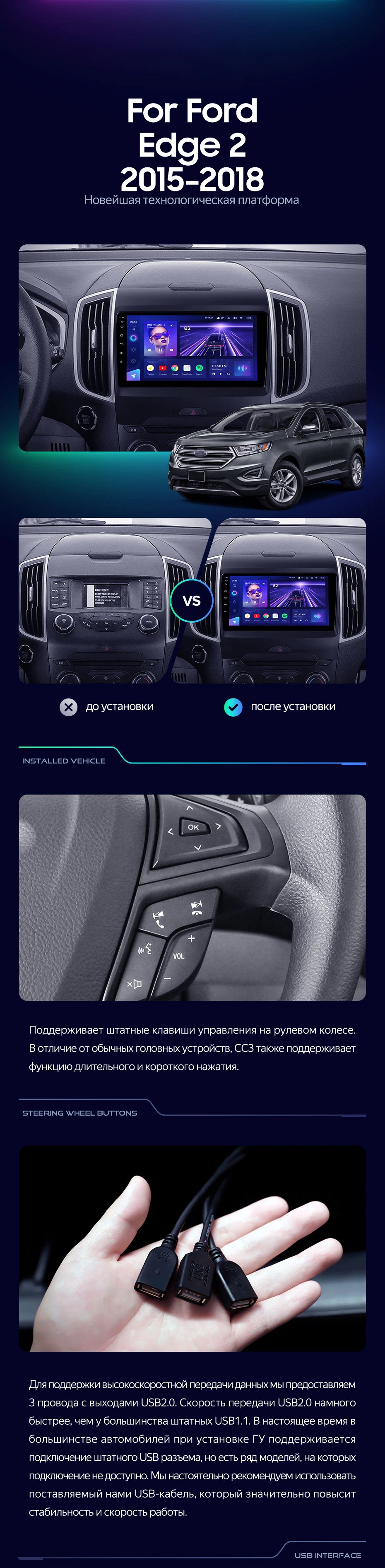 Штатная магнитола Teyes CC3 4/32 Ford Edge 2 (2015-2018) F1 - купить всего за 32 830 руб. в интернет-магазине в Туле Teyes.com.ru. ✓ Самый лучший выбор мультимедиа ✓ Лучшая замена штатному ГУ ✓ Тел. +7 (800) 775-31-74