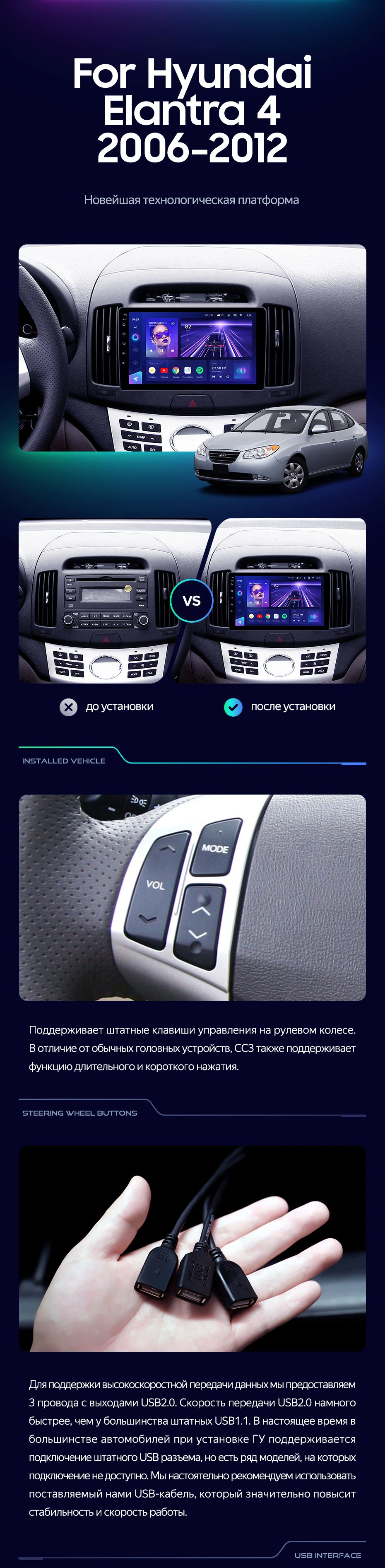Штатная магнитола Teyes CC3 4/32 Hyundai Elantra 4 HD (2006-2012) - купить всего за 32 230 руб. в интернет-магазине в Туле Teyes.com.ru. ✓ Самый лучший выбор мультимедиа ✓ Лучшая замена штатному ГУ ✓ Тел. +7 (800) 775-31-74