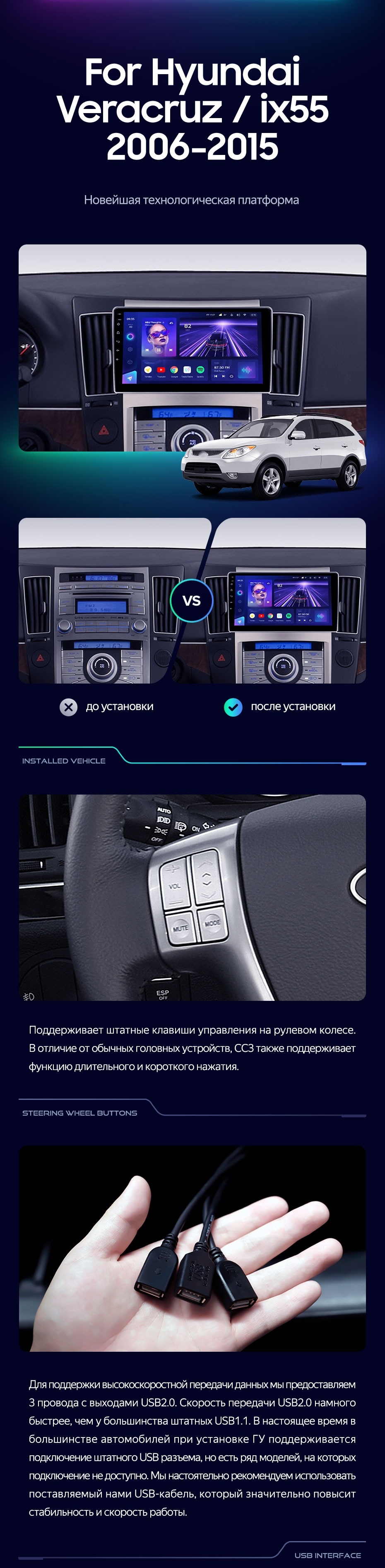 Штатная магнитола Teyes CC3 4/32 Hyundai ix55 (2006-2015) - купить всего за 34 730 руб. в интернет-магазине в Туле Teyes.com.ru. ✓ Самый лучший выбор мультимедиа ✓ Лучшая замена штатному ГУ ✓ Тел. +7 (800) 775-31-74