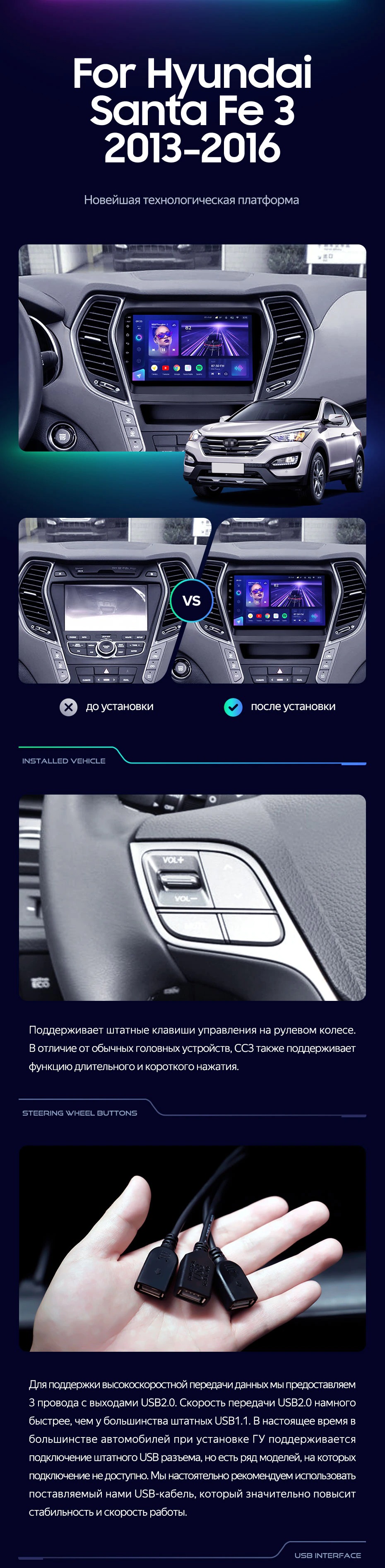 Штатная магнитола Teyes CC3 4/32 Hyundai Santa Fe 3 (2013-2016) Тип-B - купить всего за 33 530 руб. в интернет-магазине в Туле Teyes.com.ru. ✓ Самый лучший выбор мультимедиа ✓ Лучшая замена штатному ГУ ✓ Тел. +7 (800) 775-31-74