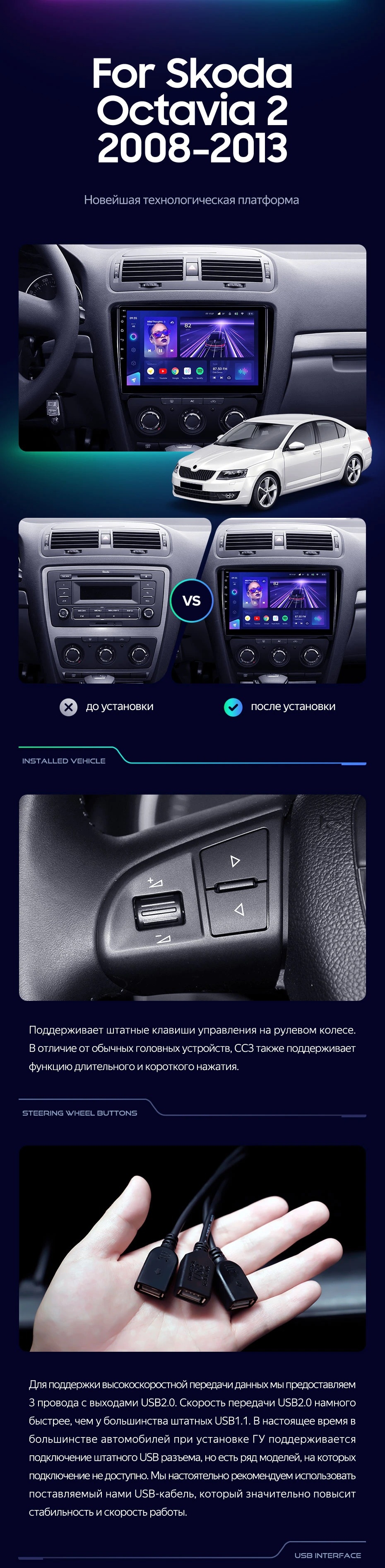 Штатная магнитола Teyes CC3 4/32 Skoda Octavia 2 A5 (2008-2013) - купить всего за 32 890 руб. в интернет-магазине в Туле Teyes.com.ru. ✓ Самый лучший выбор мультимедиа ✓ Лучшая замена штатному ГУ ✓ Тел. +7 (800) 775-31-74