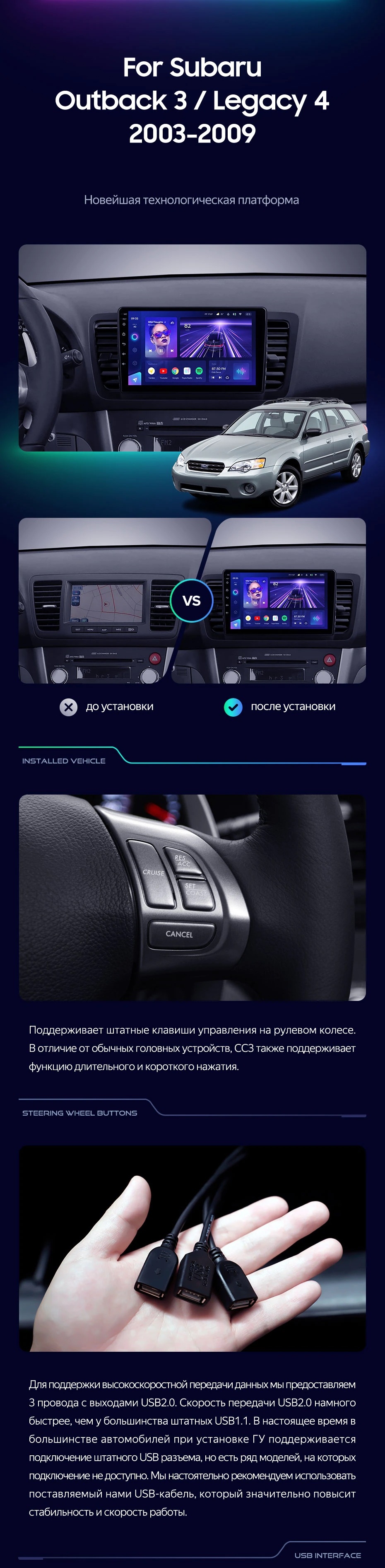 Штатная магнитола Teyes CC3 4/32 Subaru Outback 3 (2003-2009) - купить всего за 32 480 руб. в интернет-магазине в Туле Teyes.com.ru. ✓ Самый лучший выбор мультимедиа ✓ Лучшая замена штатному ГУ ✓ Тел. +7 (800) 775-31-74