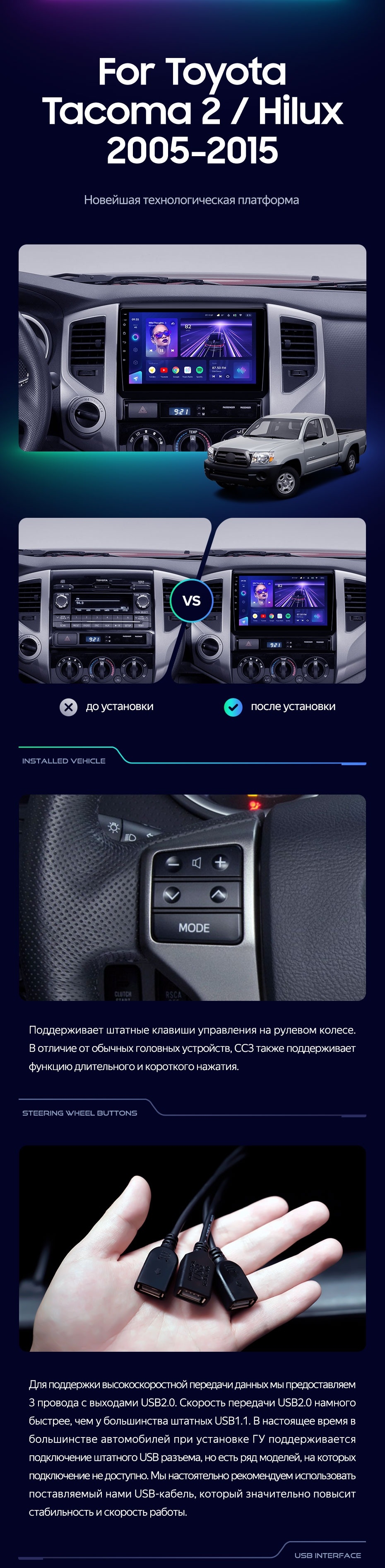 Штатная магнитола Teyes CC3 4/32 Toyota Tacoma 2 (2005-2015) - купить всего за 33 430 руб. в интернет-магазине в Туле Teyes.com.ru. ✓ Самый лучший выбор мультимедиа ✓ Лучшая замена штатному ГУ ✓ Тел. +7 (800) 775-31-74