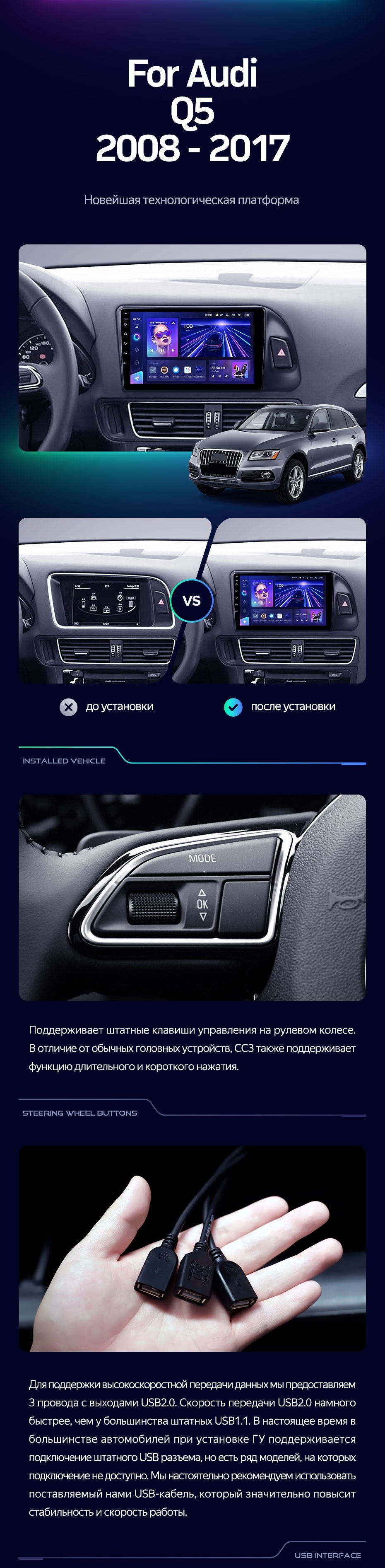 Штатная магнитола Teyes CC3L 4/32 Audi Q5 8R (2008-2017) Тип-A - купить всего за 31 540 руб. в интернет-магазине в Туле Teyes.com.ru. ✓ Самый лучший выбор мультимедиа ✓ Лучшая замена штатному ГУ ✓ Тел. +7 (800) 775-31-74