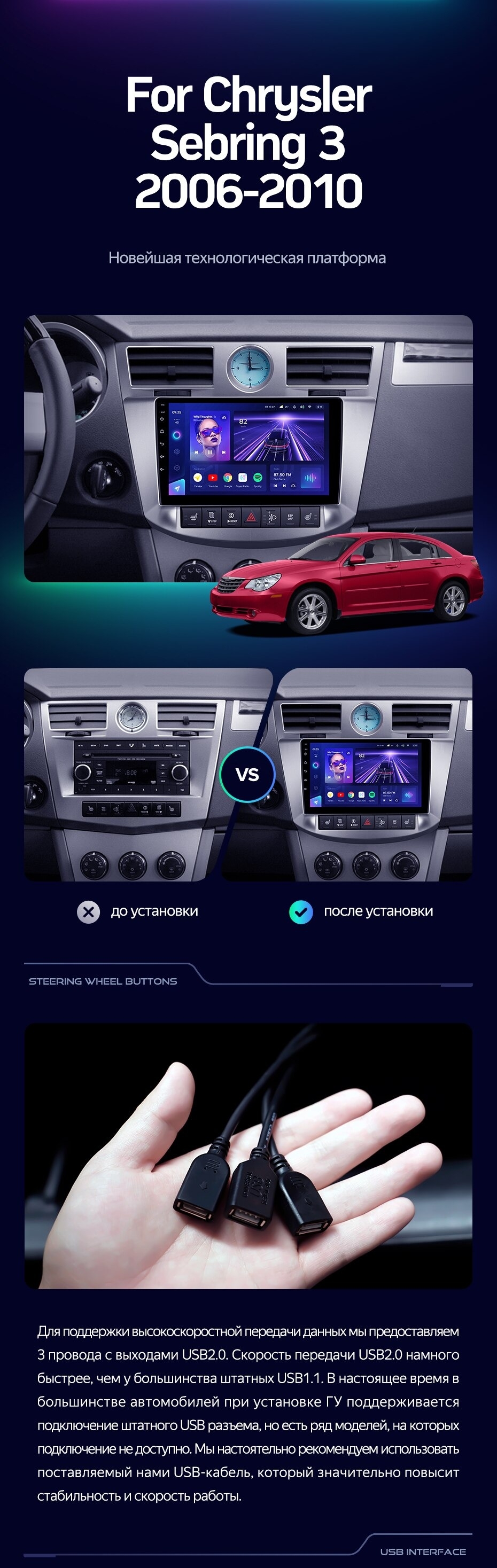 Штатная магнитола Teyes CC3L 4/32 Chrysler Sebring 3 JS (2006-2010) - купить всего за 31 400 руб. в интернет-магазине в Туле Teyes.com.ru. ✓ Самый лучший выбор мультимедиа ✓ Лучшая замена штатному ГУ ✓ Тел. +7 (800) 775-31-74