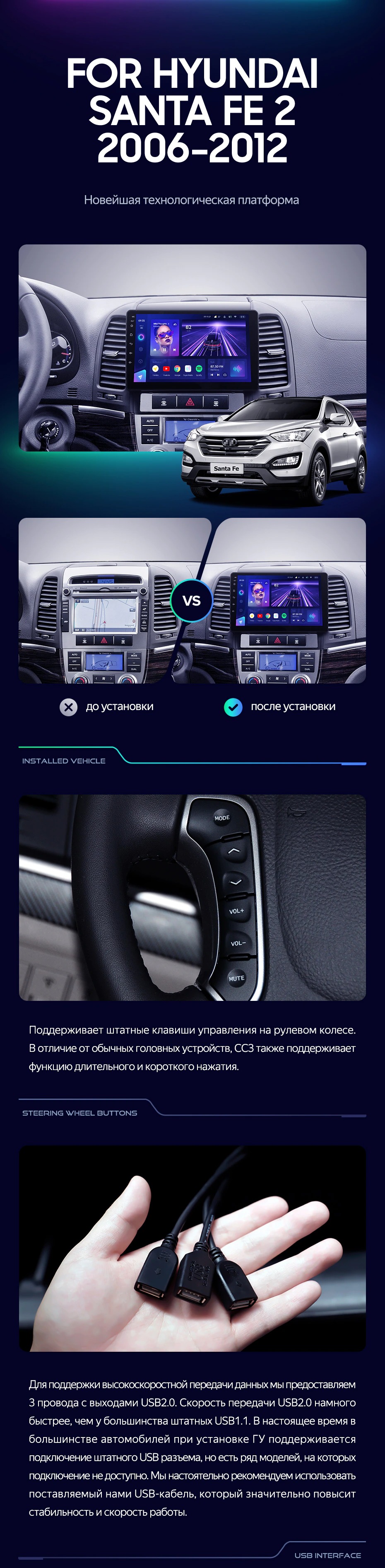 Штатная магнитола Teyes CC3L 4/32 Hyundai Santa Fe 2 (2006-2012) - купить всего за 28 440 руб. в интернет-магазине в Туле Teyes.com.ru. ✓ Самый лучший выбор мультимедиа ✓ Лучшая замена штатному ГУ ✓ Тел. +7 (800) 775-31-74