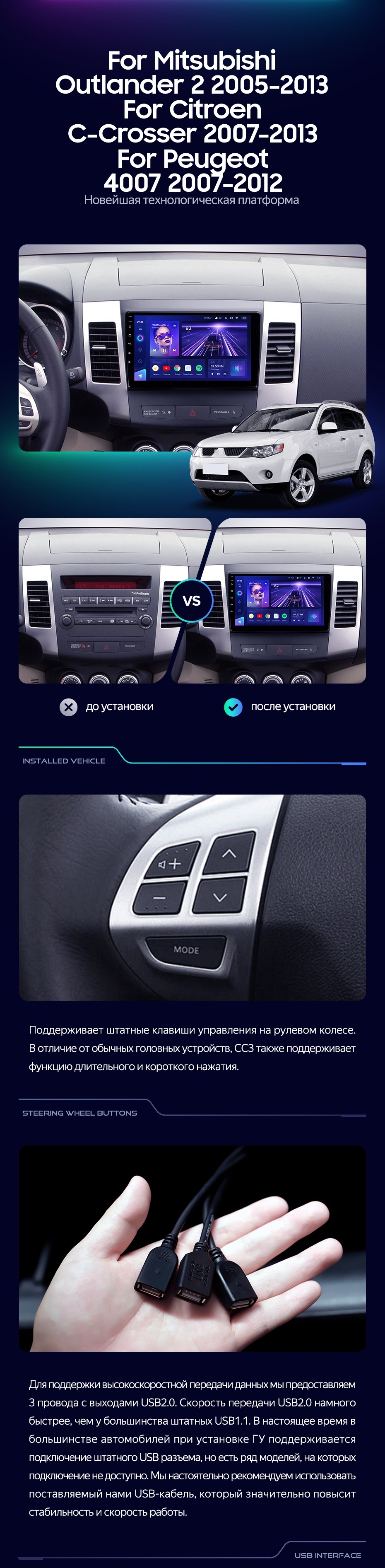Штатная магнитола Teyes CC3L 4/32 Mitsubishi Outlander 2 (2005-2011) Тип-B - купить всего за 28 600 руб. в интернет-магазине в Туле Teyes.com.ru. ✓ Самый лучший выбор мультимедиа ✓ Лучшая замена штатному ГУ ✓ Тел. +7 (800) 775-31-74
