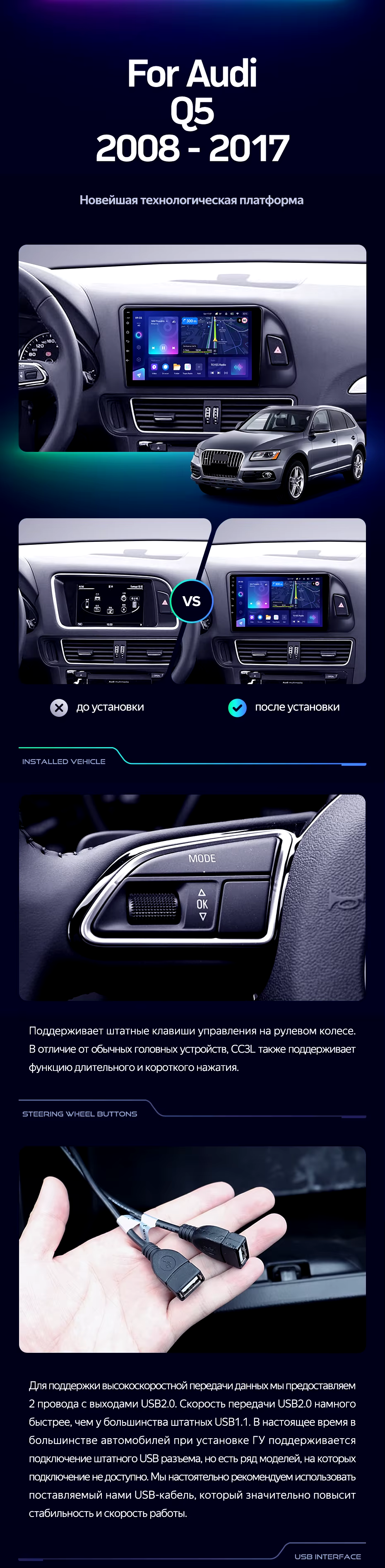 Штатная магнитола Teyes CC3L 4/64 Audi Q5 8R (2008-2017) Тип-A - купить всего за 33 750 руб. в интернет-магазине в Туле Teyes.com.ru. ✓ Самый лучший выбор мультимедиа ✓ Лучшая замена штатному ГУ ✓ Тел. +7 (800) 775-31-74