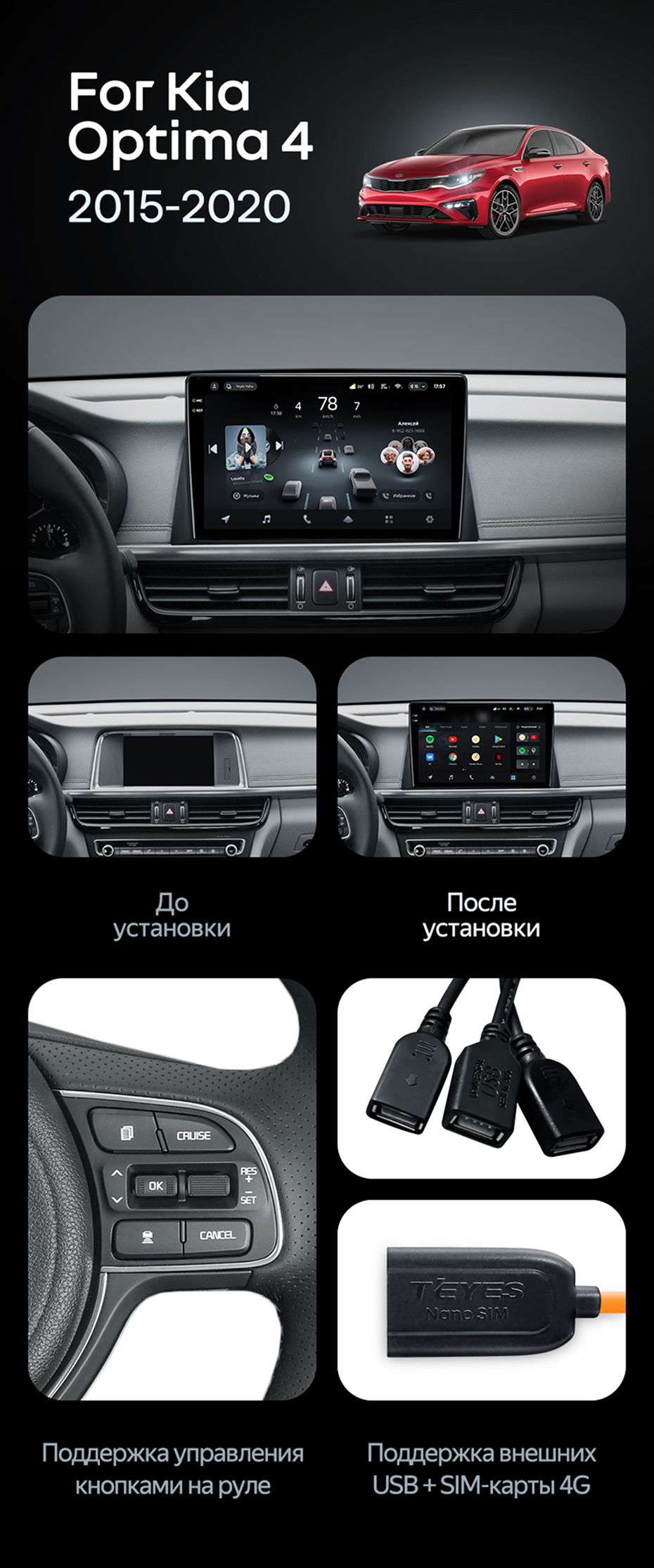 Штатная магнитола Teyes CC4 6/64 Kia Optima 4 JF (2015-2020) Тип-B - купить всего за 49 040 руб. в интернет-магазине в Туле Teyes.com.ru. ✓ Самый лучший выбор мультимедиа ✓ Лучшая замена штатному ГУ ✓ Тел. +7 (800) 775-31-74