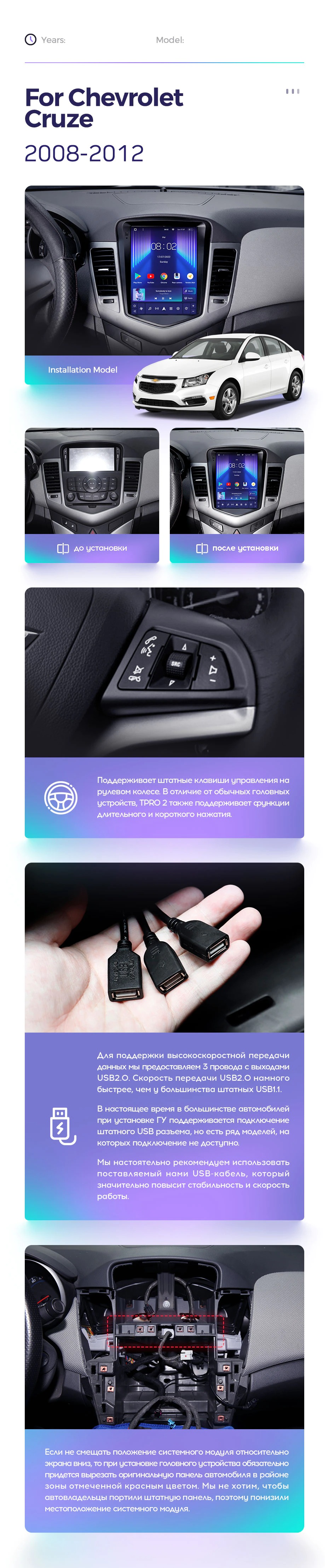 - Мультимедийные возможности: Поддерживает функцию разделения экрана для одновременной работы двух приложений. Имеется встроенный гироскоп и возможность подключения до 6 аналоговых камер.