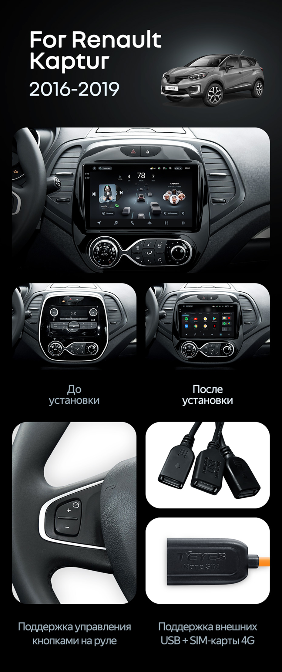 Штатная магнитола Teyes CC4 6/64 Renault Kaptur (2016-2019) F1 - купить всего за 46 050 руб. в интернет-магазине в Туле Teyes.com.ru. ✓ Самый лучший выбор мультимедиа ✓ Лучшая замена штатному ГУ ✓ Тел. +7 (800) 775-31-74
