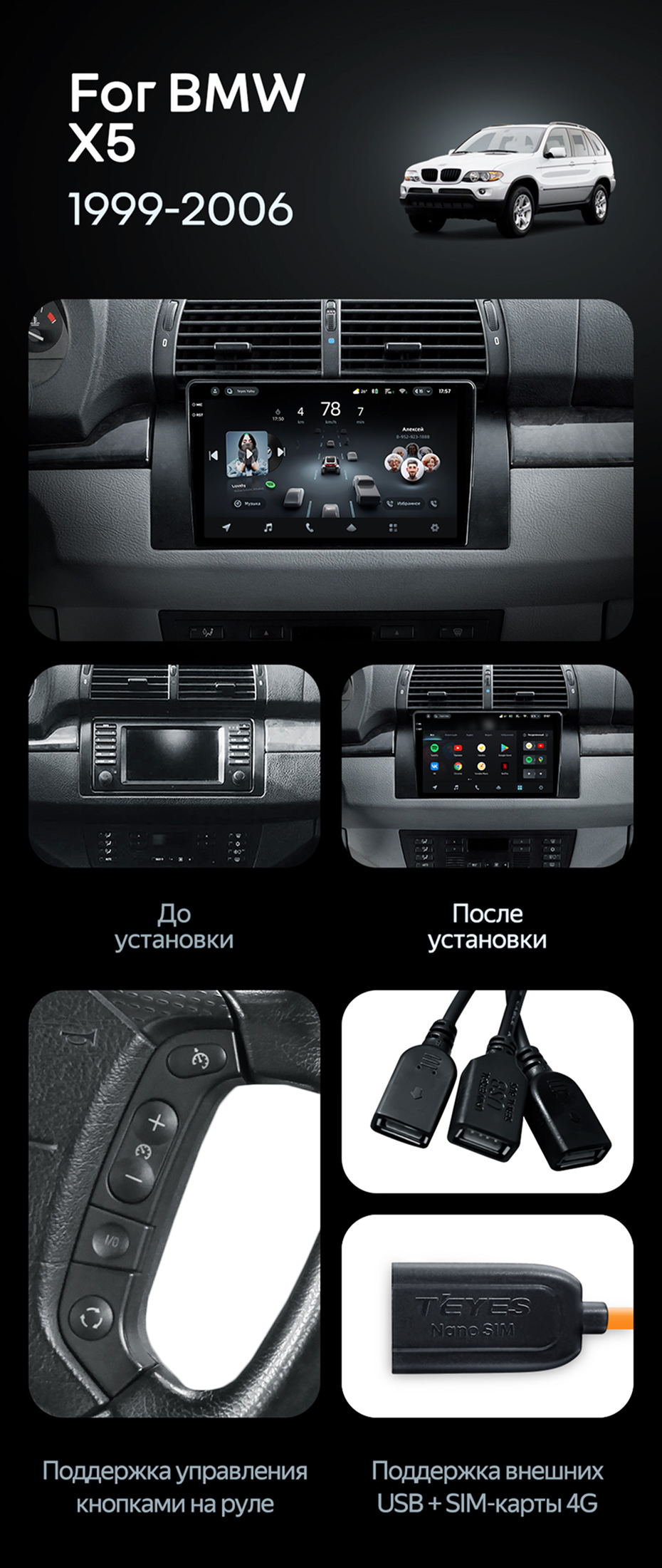 Штатная магнитола Teyes CC4 Pro 12/256 BMW X5 E39 E53 (1999-2006) - купить всего за 70 010 руб. в интернет-магазине в Туле Teyes.com.ru. ✓ Самый лучший выбор мультимедиа ✓ Лучшая замена штатному ГУ ✓ Тел. +7 (800) 775-31-74