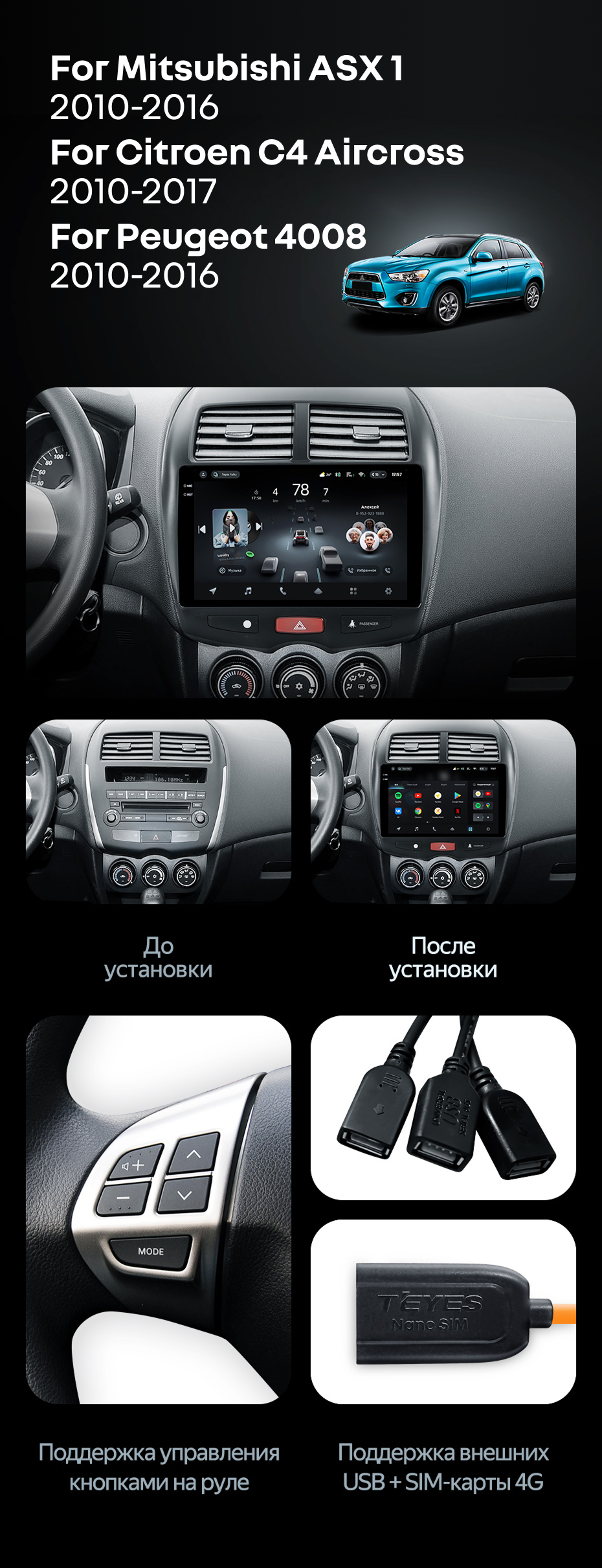 Штатная магнитола Teyes CC4 Pro 12/256 Citroen C4 Aircross (2010-2017) Тип-B - купить всего за 69 460 руб. в интернет-магазине в Туле Teyes.com.ru. ✓ Самый лучший выбор мультимедиа ✓ Лучшая замена штатному ГУ ✓ Тел. +7 (800) 775-31-74