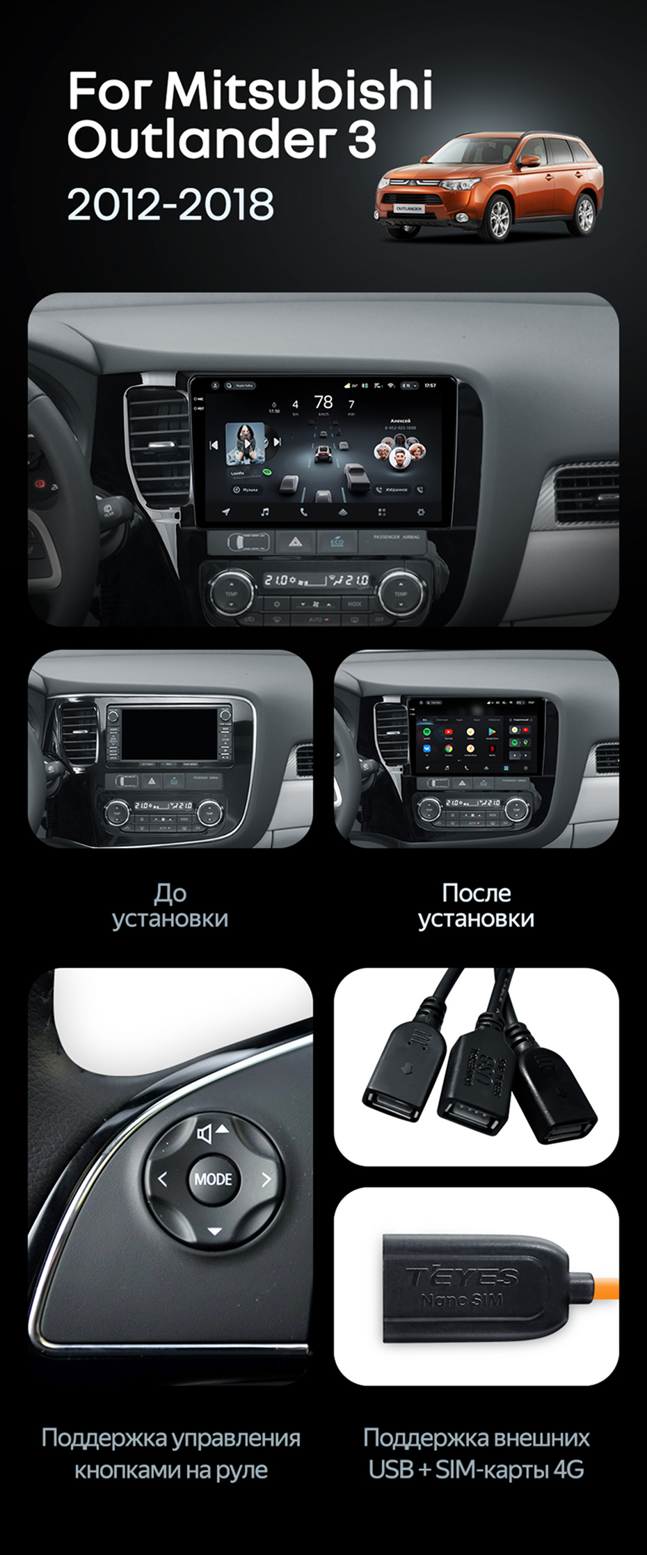 Штатная магнитола Teyes CC4 Pro 12/256 Mitsubishi Outlander 3 (2012-2018) Тип-A - купить всего за 68 660 руб. в интернет-магазине в Туле Teyes.com.ru. ✓ Самый лучший выбор мультимедиа ✓ Лучшая замена штатному ГУ ✓ Тел. +7 (800) 775-31-74