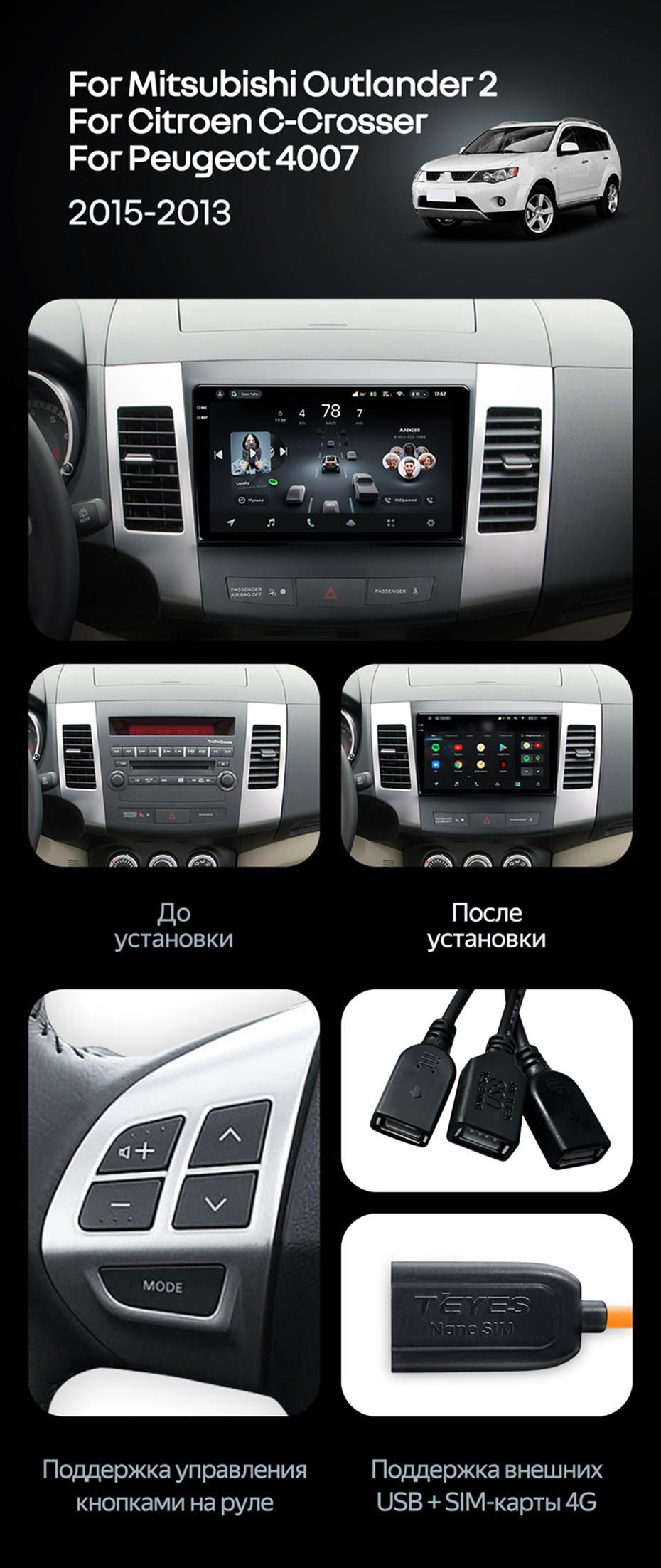 Штатная магнитола Teyes CC4 Pro 12/256 Peugeot 4007 (2007-2012) Тип-B - купить всего за 70 640 руб. в интернет-магазине в Туле Teyes.com.ru. ✓ Самый лучший выбор мультимедиа ✓ Лучшая замена штатному ГУ ✓ Тел. +7 (800) 775-31-74
