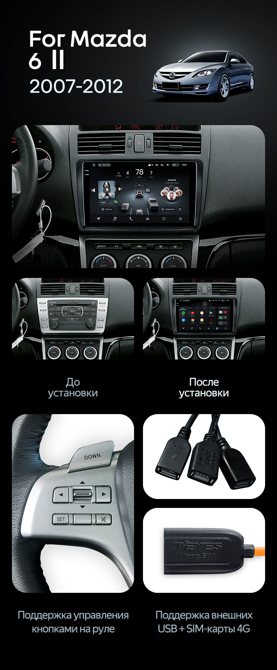 Штатная магнитола Teyes CC4 Pro 8/128 Mazda 6 2 GH (2007-2012) - купить всего за 58 380 руб. в интернет-магазине в Туле Teyes.com.ru. ✓ Самый лучший выбор мультимедиа ✓ Лучшая замена штатному ГУ ✓ Тел. +7 (800) 775-31-74