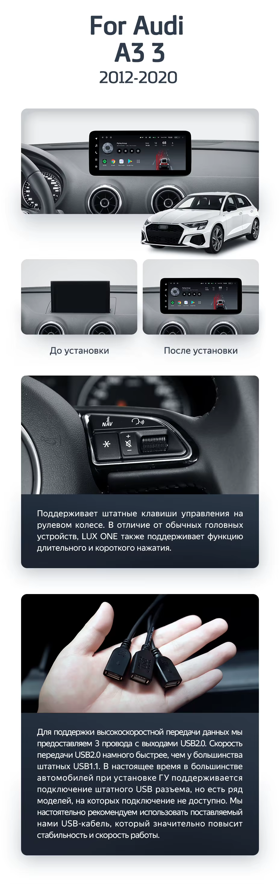 Штатная магнитола Teyes LUX ONE 4/64 Audi A3 3 8V (2012-2020) - купить всего за 41 300 руб. в интернет-магазине в Туле Teyes.com.ru. ✓ Самый лучший выбор мультимедиа ✓ Лучшая замена штатному ГУ ✓ Тел. +7 (800) 775-31-74