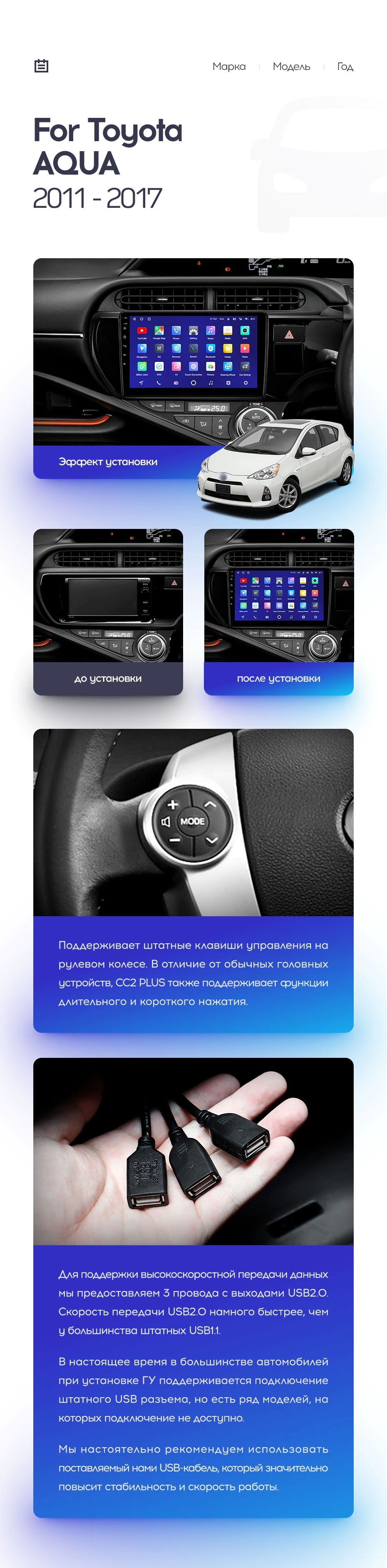 Полный комплект установки магнитолы Teyes с рамкой и проводкой можно выбрать в каталоге штатных магнитол Toyota Aqua (2011-2017).